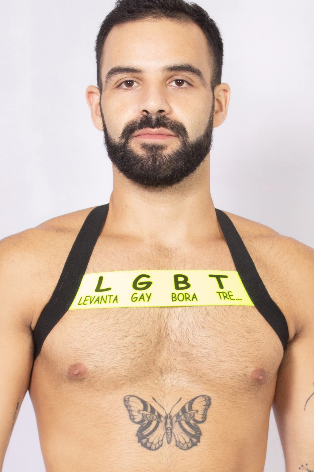 Harness elástico preto com frente em amarelo limão. Atenção: cores fluor não são captadas com fidelidade pela foto, pode haver pequena diferença ( ligeiramente mais clara ou escura ) da peça pessoalmente. Estampa sublimada em letras pretas.Composição 90% poliester 10% elastano.